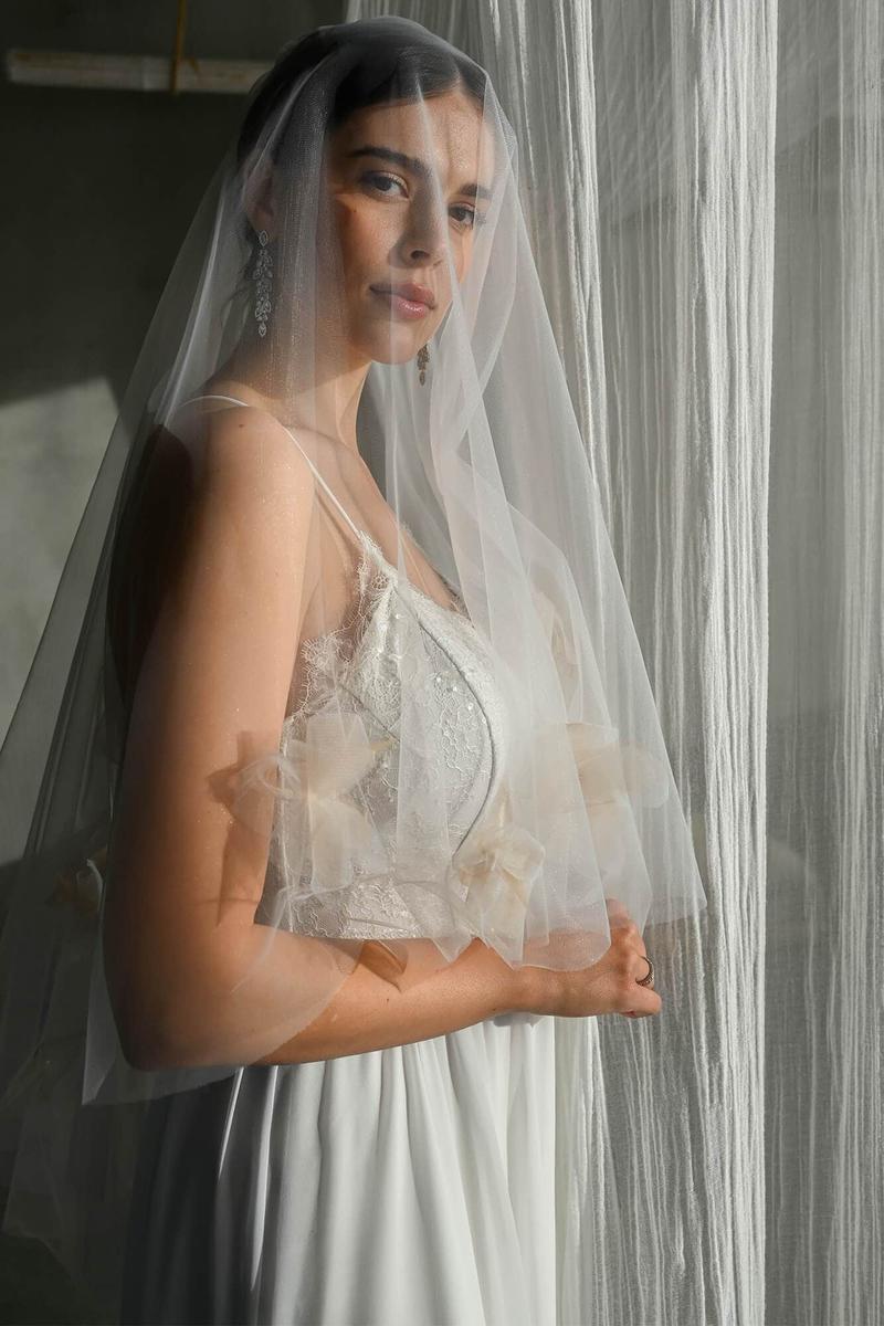 Gdy wybierasz materiał welonu, warto postawić na coś, co naprawdę Cię zachwyca. Tiul, koronkowe akcenty, a może lekka organza? Tiul ma w sobie ten urok – jest lekki i zwiewny; pamiętaj jednak, że w określonych warunkach może mieć swoje humory i elektryzować się, co niezbyt dobrze pasuje do stylu „złapanej w burzę” w dniu ślubu. Jeżeli Twoja suknia zdobiona jest w bogaty sposób, welon w jednolitym kolorze pomoże utrzymać równowagę, natomiast welon z koronką idealnie sprawdzi się w zestawieniu z sukienkami w stylu vintage.